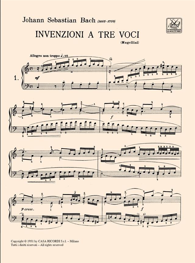 Invenzioni A 3 Voci Per Pianoforte BACH JOHANN SEBASTIAN