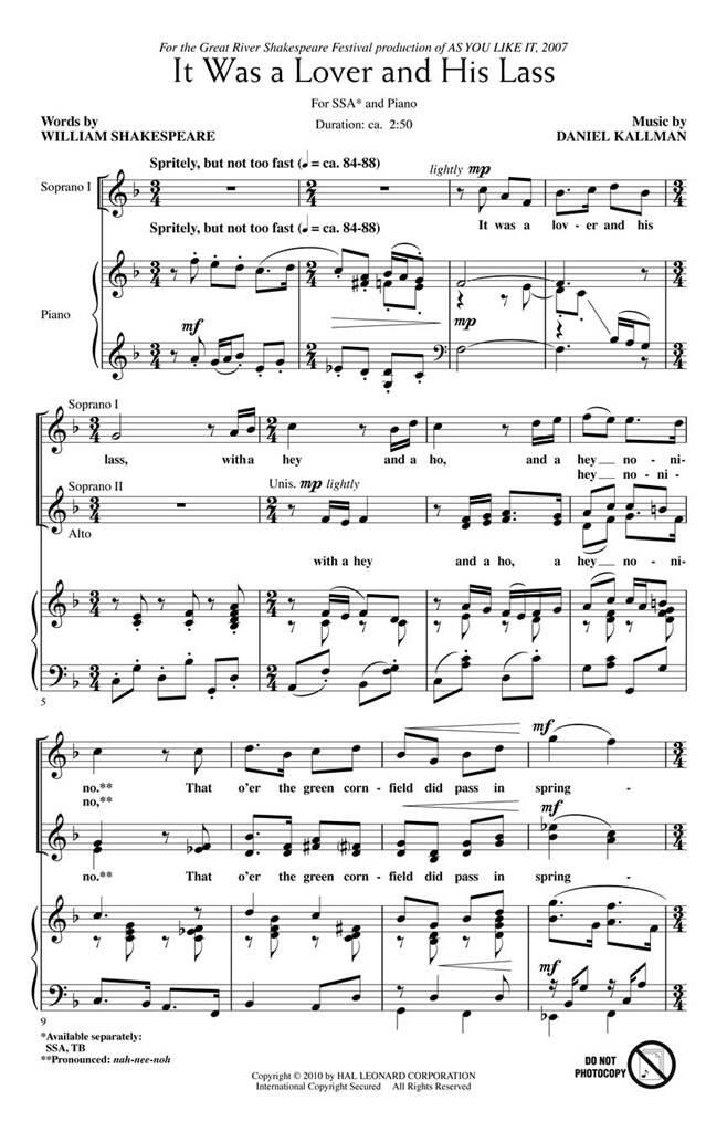 This delightful setting of Shakespeare's well known whimsical celebration of springtime love will be a joy to perform! Dancing melodies dart and play over the brilliant piano textures for a superb choral showpiece!