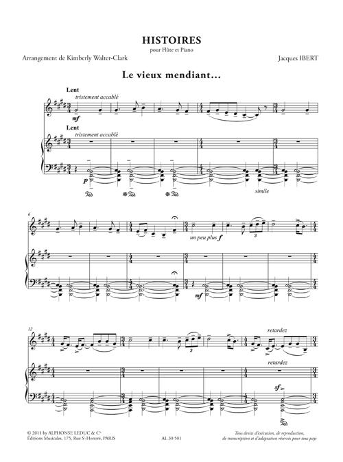 Jacques Ibert: Histoires – Arr. Kimberly Walter-Clark (Flûte/Piano) IBERT JACQUES