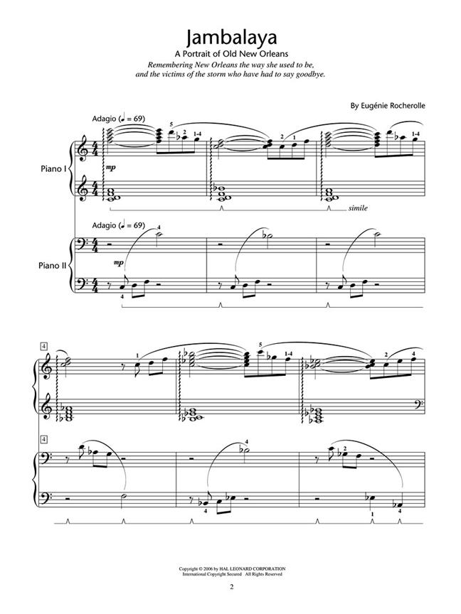 Ce portrait de la vieille Nouvelle-Orléans capture les ambiances vives et belles de cette grande ville sous son jour le plus élégant. Ce duo captivant pour deux pianos/quatre mains alterne entre un style jazzy et entraînant et une chaleur lyrique avec une référence festive à « When the Saints Go Marching In » pour un dernier touchdown. Comprend deux partitions.