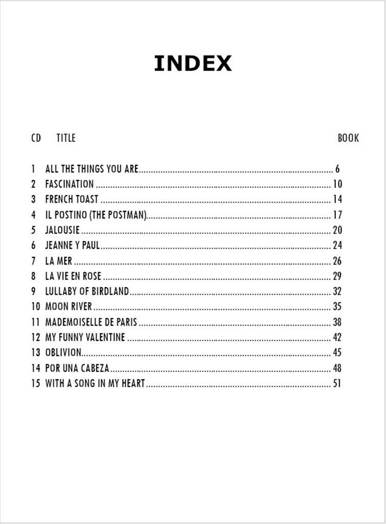 Arrangements came from many accordion players who are fans of my music. I have always written music for myself, mostly jazz arrangements for different groups that I played with through the years, but until I took on a few students in recent years, I realized there was not much interesting music for them to play. They heard some of my recordings, the solo one’s especially and asked me to write arrangements that were not too diffcult but had some of the more modern Harmonies that I use in my playing and a little more sophisticated musically. They especially wanted some of the great standards or “Evergreens”. I started writing and found that I enjoyed it and received much good feedbackfrom everyone. I hope you enjoy this Book. Frank Marocco