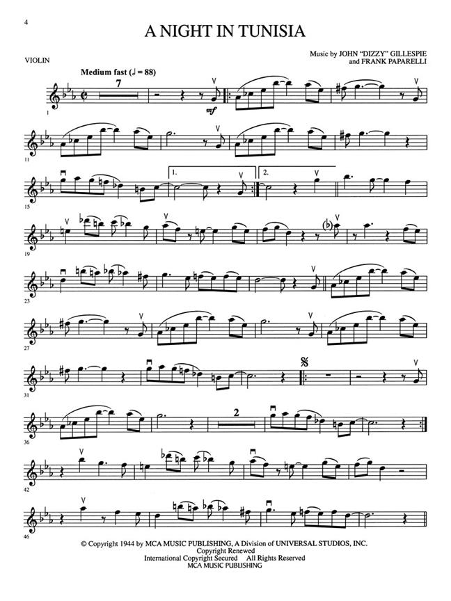 14 songs complete with demo and play-along tracks accessed online for streaming or download, including: Bernie's Tune · Cry Me a River · Fever · Fly Me to the Moon (In Other Words) · God Bless' the Child · Harlem Nocturne · Moonglow · A Night in Tunisia · One Note Samba (Samba De Uma Nota So) · Opus One · Satin Doll · Slightly Out of Tune (Desafinado) · Take the A Train · Yardbird Suite. The audio is accessed online using the unique code inside each book and can be streamed or downloaded. The audio files include PLAYBACK+, a multi-functional audio player that allows you to slow down audio without changing pitch, set loop points, change keys, and pan left or right.