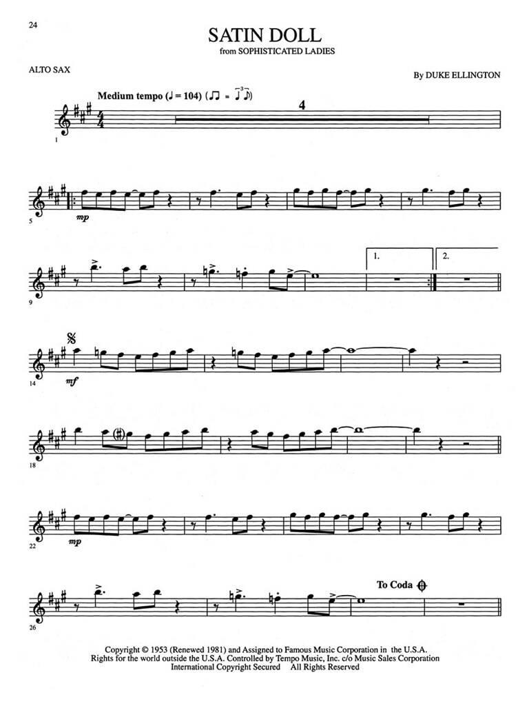 14 chansons pour saxophone solo, accompagnées d’un CD de jeu en chœur. Comprend : Bernie’s Tune - Cry Me a River - Fever - Fly Me to the Moon - God Bless' the Child - Harlem Nocturne - Moonglow - A Night in Tunisia - One Note Samba - Opus One One