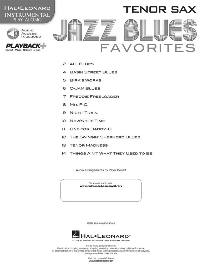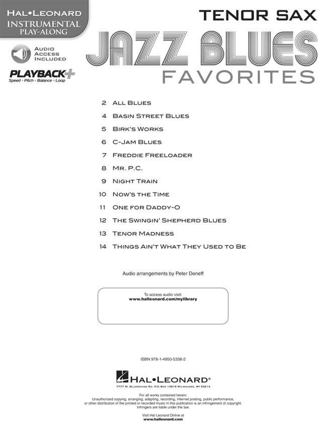Des arrangements solo des recueils "a dozen a day jazz blues tunes” sont compris dans cette collection pour musiciens débutants. Un accès audio ainsi que des pistes de démonstration à télécharger ou écouter en ligne vous aideront à mieux interpréter la chanson! Sont comprises: Basin Street Blues - C-Jam Blues - Freddie Freeloader - Night Train - One for Daddy-O - The Swingin' Shepherd Blues - Tenor Madness - et bien d'autres!