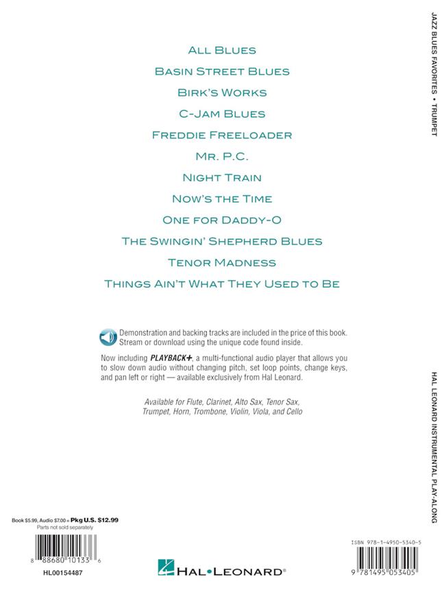 Des arrangements solo des recueils "a dozen a day jazz blues tunes” sont compris dans cette collection pour musiciens débutants. Un accès audio ainsi que des pistes de démonstration à télécharger ou écouter en ligne vous aideront à mieux interpréter la chanson! Sont comprises: Basin Street Blues - C-Jam Blues - Freddie Freeloader - Night Train - One for Daddy-O - The Swingin' Shepherd Blues - Tenor Madness - et bien d'autres!