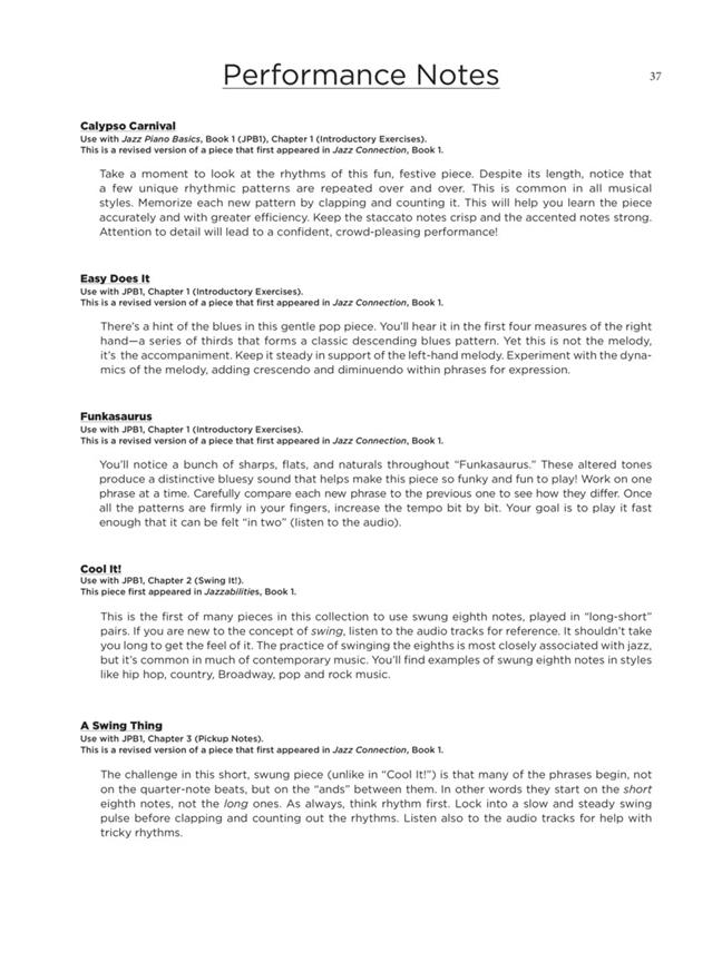 17 pieces written in a jazz style that progress from later elementary to mid-intermediate level. May be used with the Jazz Piano Basics series or as independent solo recital pieces! Several of the pieces were previously in the Eric's Jazz Connection series. Includes online audio files and performance notes by the composer. Titles: Berry Blue Jam - Bossa Rio - The Brazilian Bop - Burgundy Street Blues - Calypso Carnival - Cool It! - Easy Does It - Fol-de-rol - Funkasaurus - Island Breeze - Jumpin' with Mr. Jordan - Main at Midnight - Mellow Mood - Out on a Limbo - Reflection - A Swing Thing - Tango Up in Blue. 17 great pieces written to help a student become familiar with various jazz styles. They progress from later elementary to mid-intermediate level and may be used with the Jazz Piano Basics series or as independent solo recital pieces! Several of the pieces were previously in the Jazz Connection series. Includes online audio files as well as in-depth performance notes by the composer. Songs include: Berry Blue Jam - Bossa Rio - The Brazilian Bop - Burgundy Street Blues - Calypso Carnival - Cool It! - Easy Does It - Fol-de-rol - Funkasaurus - Island Breeze - Jumpin' with Mr. Jordan - Main at Midnight - Mellow Mood - Out on a Limbo - Reflection - A Swing Thing - Tango Up inBlue. On AMEB Syllabus.