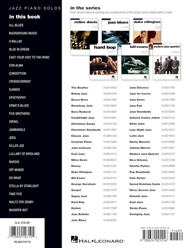 Jazz Piano Solos Series Volume 5 : Cool Jazz contient la partition de 24 morceaux des jazzistes des années 50 et 60 qui ont inventé le cool, dont All Blues (Miles Davis, George Benson), A Ballad (Gerry Mulligan, Stan Getz), Con Alma (Dizzy Gillespie, Stan Getz) et bien d’autres.