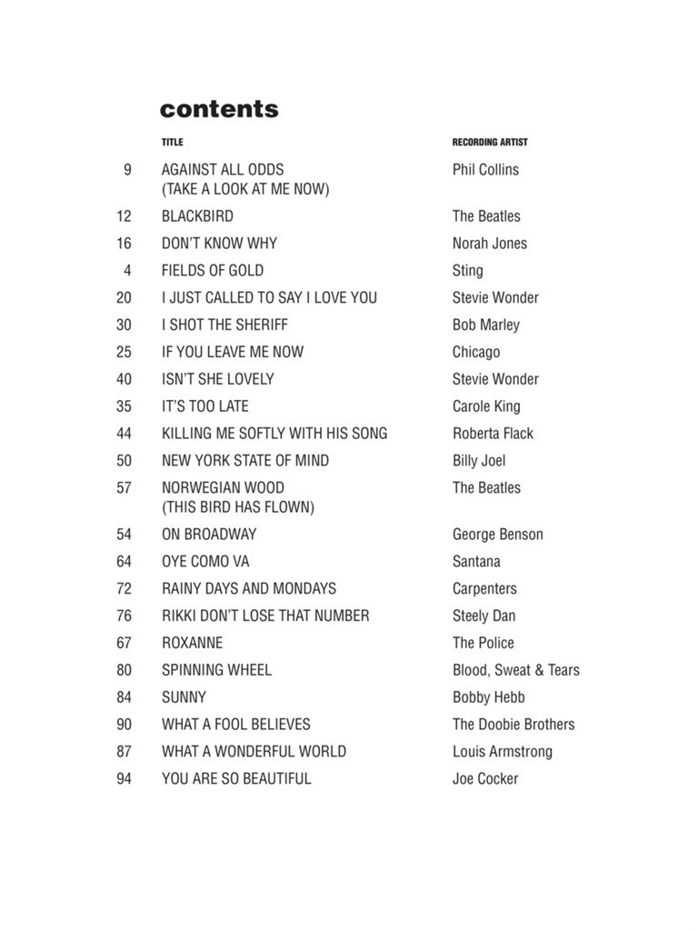 Jazz arrangements pour piano avec le nom des accords de 22 chansons classiques de la pop.