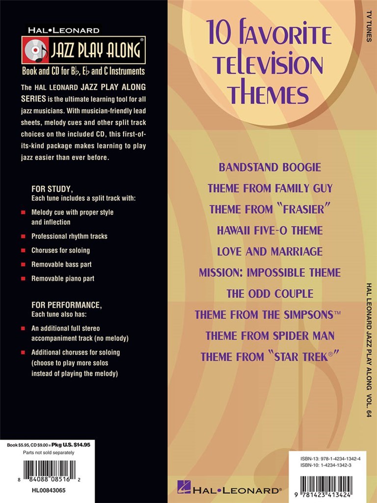 Grâce à la série Jazz Play Along vous pourrez jouer les thème de vos séries télé préférées. Partitions pour instruments en Bb, Eb et C + CD audio contenant 2 versions de chaque morceaux (1 démo compléte + une version sans soliste).