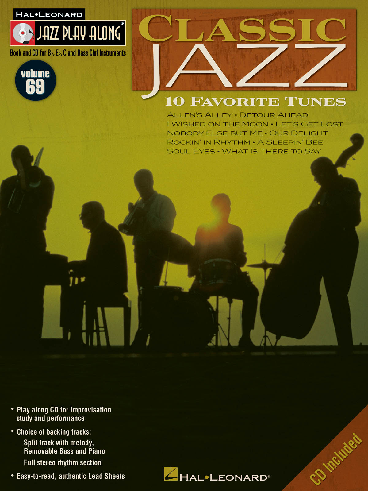 Outils pédagogique pour tous les jazzmen. Séléction de 10 classiques arrangés pour les instruments en Bb, Eb et C. Les parties piano et basse sont détachables. Sur le CD vous trouverez deux versions de chaque thème : une avec tous les instruments et une autre sans la partie solo.