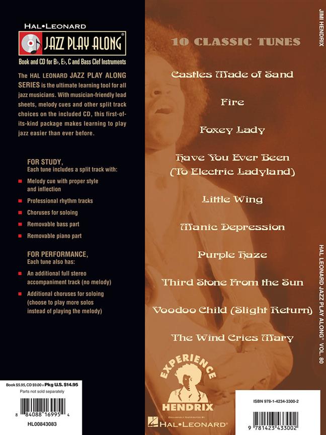 Outils pédagogique pour tous les jazzmen. Séléction de 10 classiques de Jimi Hendrix arrangés pour les instruments en Bb, Eb et C. Les parties piano et basse sont détachables. Sur le CD vous trouverez deux versions de chaque thème : une avec tous les instruments et une autre sans la partie solo.