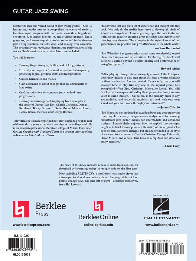Ce livre et coffret à télécharger de Berklee Press initient le lecteur au riche et varié univers de la guitare jazz grand public. Jazz Swing Guitar comprend 47 leçons et études qui proposent un parcours complet facilitant un progrès rapide en sensibilité harmonique, en érudition sur la touche, en répertoire essentiel et en nuances stylistiques.