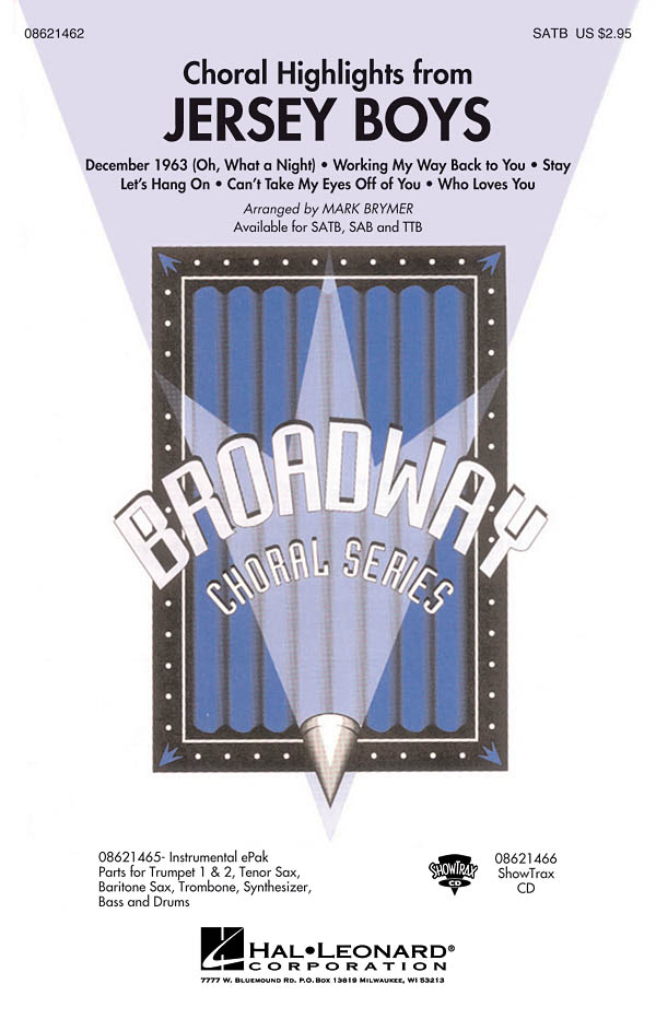 Basé sur l'inspiration des chiffons à la richesse de l'histoire de Frankie Valli and The Four Seasons, ce spectacle a remporté le Prix 2006 de Tony pour la meilleure comédie musicale. Ce medley de 8 minutes capte l'essence de la version Broadway et comprend: Impossible Take My Eyes Off Of You, Décembre 1963, Faisons Hang On, Stay, qui vous aime et de travail My Way Back to You. Temps de Performance: Env. . 8:20 Disponible séparément: SATB, SAB, TTB, ShowTrax CD et EPAK Instrumental (pièces pour trompette 1 and 2, sax ténor, sax baryton, trombone, synthétiseur, basse et batterie).