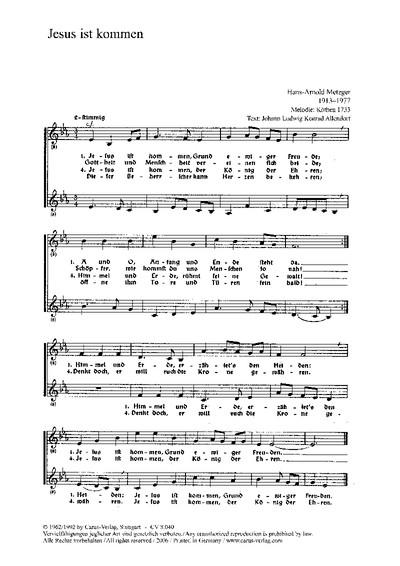 Jesus Ist Kommen, Grund Ewiger Freude METZGER HANS-ARNOLD