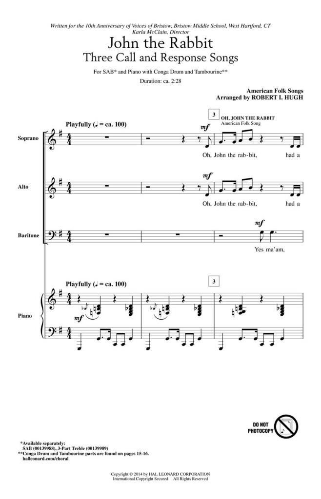 Trois chansons folkloriques préférées sont combinées dans ce court medley avec piano, conga et tambourin pour un spectacle choral amusant et énergique ! Comprend : Oh, John le Lapin ; Lucy Rabbit ; G’wan Roun' Rabbit.