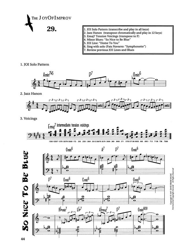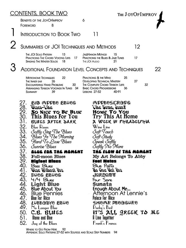 Les leçons 27 à 52 explorent davantage les voicings d’accords plus avancés, les techniques d’arrangement d’accords ainsi que des lignes blues et mélodiques plus exigeantes. Le CD enrichi qui l’accompagne est utilisé en complément du texte et de la musique comme outil d’écoute et de jeu en chœur.