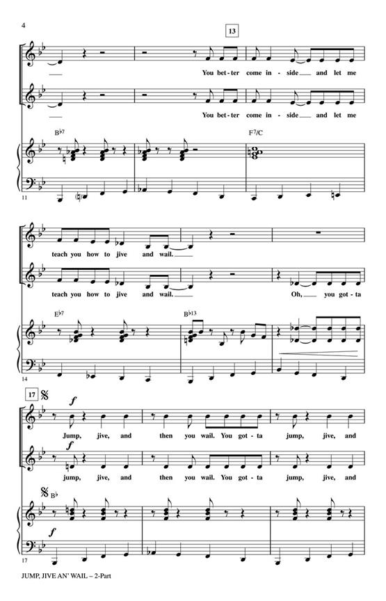 Voici un classique du swing qui apportera un peu d’excitation à votre prochain concert ! Parfait pour initier les jeunes chanteurs à cet art typiquement américain, vous apprécierez le soin apporté à la création de cet arrangement. Niveau de découverte 2. Disponible séparément : mixé en 3 parties, en 2 parties, VoiceTrax CD. Durée : environ 2h30.
