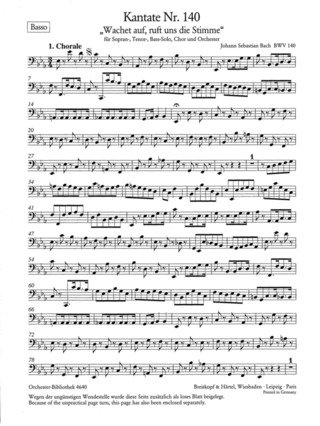 Kantate 140 Wachet Auf, Ruft Uns Die Stimme BACH JOHANN SEBASTIAN
