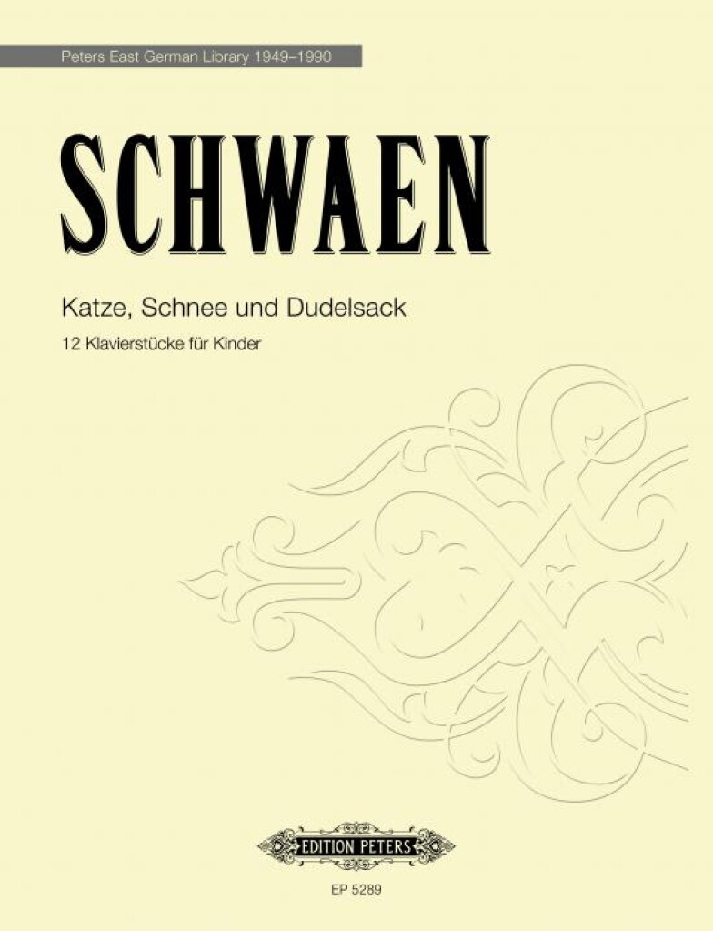 Katze, Schnee und Dudelsack, Zwölf Klavierstücke für Kinder (KSV 196) by Kurt Schwaen is a 10-minute work for solo piano. The twelve piano pieces were written between 15 November 1959 and 2 January 1960. Kurt Schwaen was an extremely productive composer whose style could be classified between Bartók, Stravinsky and Hindemith. Katze, Schnee und Dudelsack ("Cat, Snow and Bagpipe") is also oriented towards this neo-classical attitude and, despite the use of new compositional techniques, always remains catchy, easy to receive and suitable for children to perform. This edition (EP 5286) is the piano edition of this work.