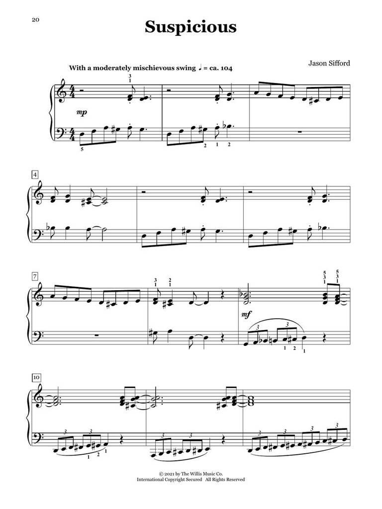 11 solos super cool pour le pianiste du début intermédiaire, inspirés par le jazz, le rock, la pop et les styles modernes ! Titres : Bloom · Figurine à ressort · Bump · Excursion d’une journée · Guajeo · Autoroute 56 · Berceuse en Bleu · Morning Glory · Situation difficile · Dispersez-vous ! · Suspect.