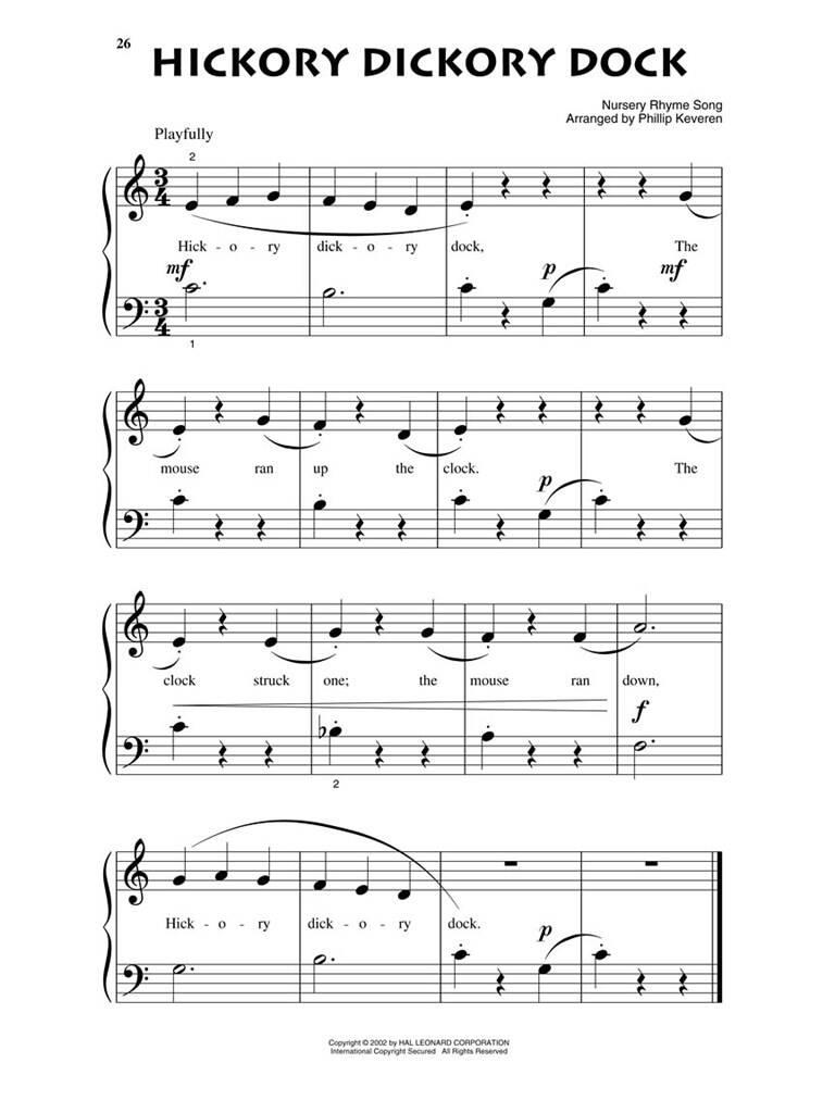 Présente 24 chansons pour enfants intemporelles, soigneusement arrangées spécialement pour pianistes débutants par Phillip Keveren.