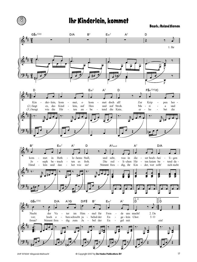 Weihnachten wird hör- und spürbar, wenn überall weihnachtliche Musik erklingt. Musiziert wird in dieser Zeit überall: auf großen und kleinen Konzertbühnen, in Kirchen, auf der Straße, auf Weihnachtsmärkten, in Schulen, Kindergärten und zu Hause. Mit Klingende Weihnacht geben wir Ihnen ein Buch mit zwanzig der beliebtesten Advents- und Weihnachtsliedern an die Hand, das Sie an all diesen Orten einsetzen können. Die mit Text versehenen Melodien können gesungen oder mit zahlreichenBlas- oder Streichinstrumenten gespielt werden. Begleiten können Klavier, Keyboard oder Gitarre und/oder, in einer klanglich besonders reizvollen Variante, eine ganze Reihe vonOrffinstrumenten, die gerade im Schulmusikunterricht oft zum Einsatzkommen. Sind keine Musiker zur Begleitung zur Stelle, legen Sie einfach die beiliegende CD ein, die stimmungsvolle Harmonien zu allen Liedern enthält. Das komplette Set enthält: - eine Klavierpartitur mit Akkorden undLiedtexten - Orffstimmen mit ausführlicher Spielanleitung - Gitarrenstimmen (mit Kapodasterverwendung) mit Akkorden und Liedtexten - Melodiestimmen für: C-, B- und Es-Instrumente im Violinschlüssel, C-Instrumente im Bassschlüssel - eine CDmit Begleitungen zu allen Liedern