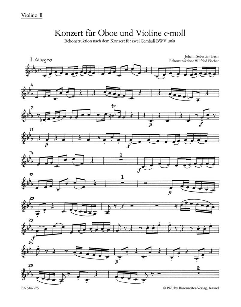 Konzert Für Oboe, Violine, Streicher Und Basso Continuo (Rekunstruiertnach Bwv 1060) BACH JOHANN SEBASTIAN