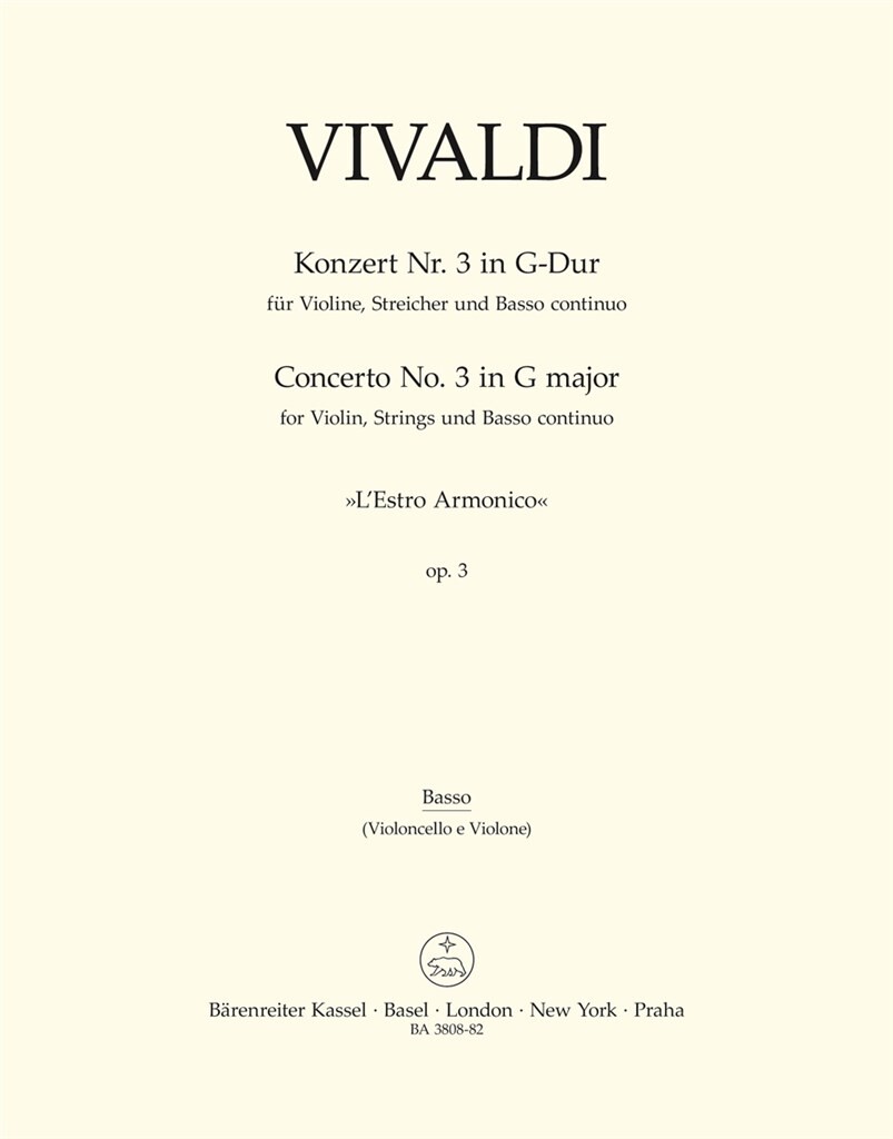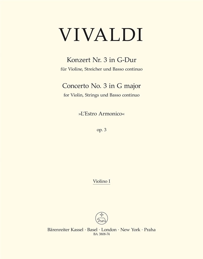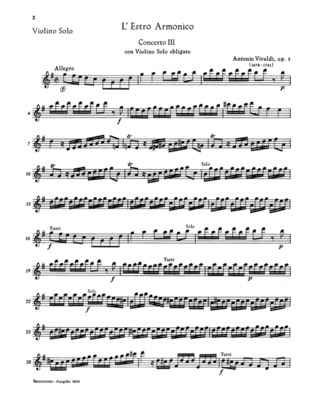 Konzert Für Violine, Streicher Und Basso Continuo ‘L’Estro Armonico Nr. 3’ (Rv 310) VIVALDI ANTONIO