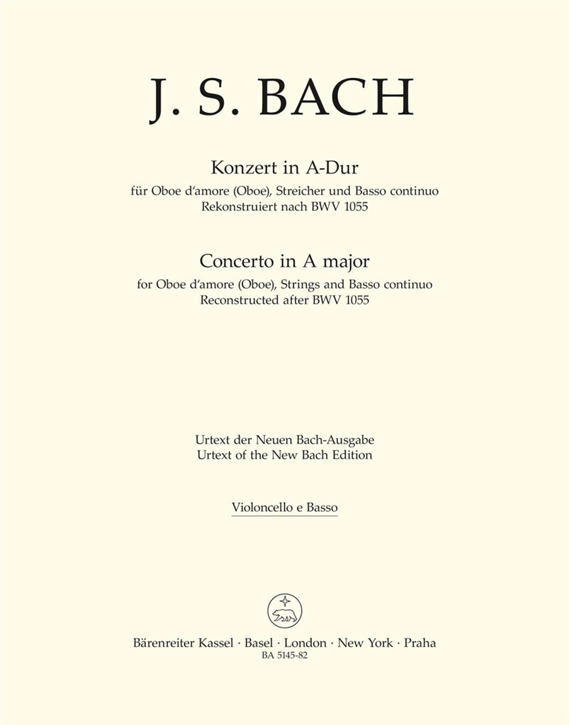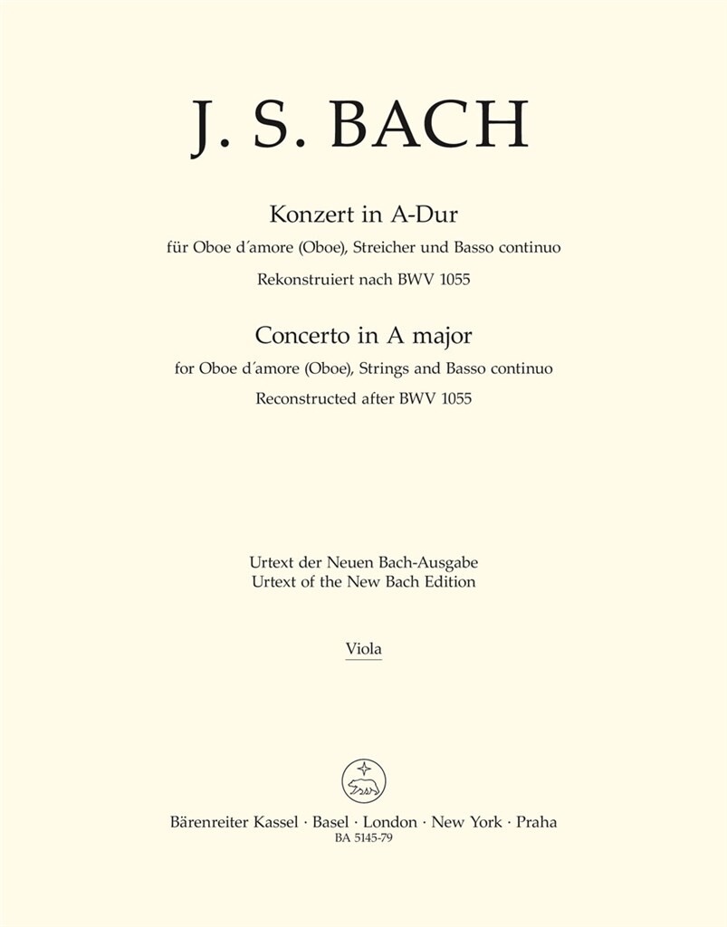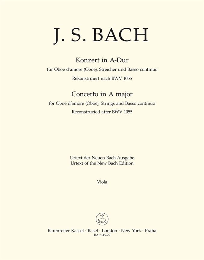 Konzert In A Für Oboe D’Amore (Oboe), Streicher Und Bc BACH JOHANN SEBASTIAN