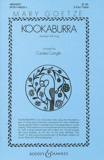 Le kookaburra est un oiseau australien semblable au martin-pêcheur, avec une tête à grande crête et une queue courte. Son appel ressemble à un rire fort, comme l’indique le texte de la chanson. Le buisson dans la chanson est la partie centrale de l’Australie, où il est si sec que seuls de petits buissons poussent. Cette chanson folklorique australienne a fait partie de l’expérience des camps et des conférences pour de nombreux jeunes Américains. Souvent, c’était leur première expérience de chant en rond. SS/A. Curtright, C
