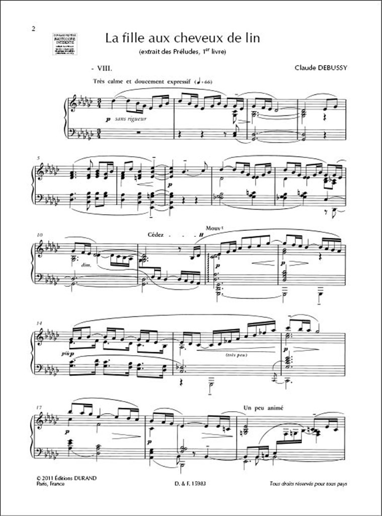 La Fille Aux Cheveux De Lin DEBUSSY CLAUDE