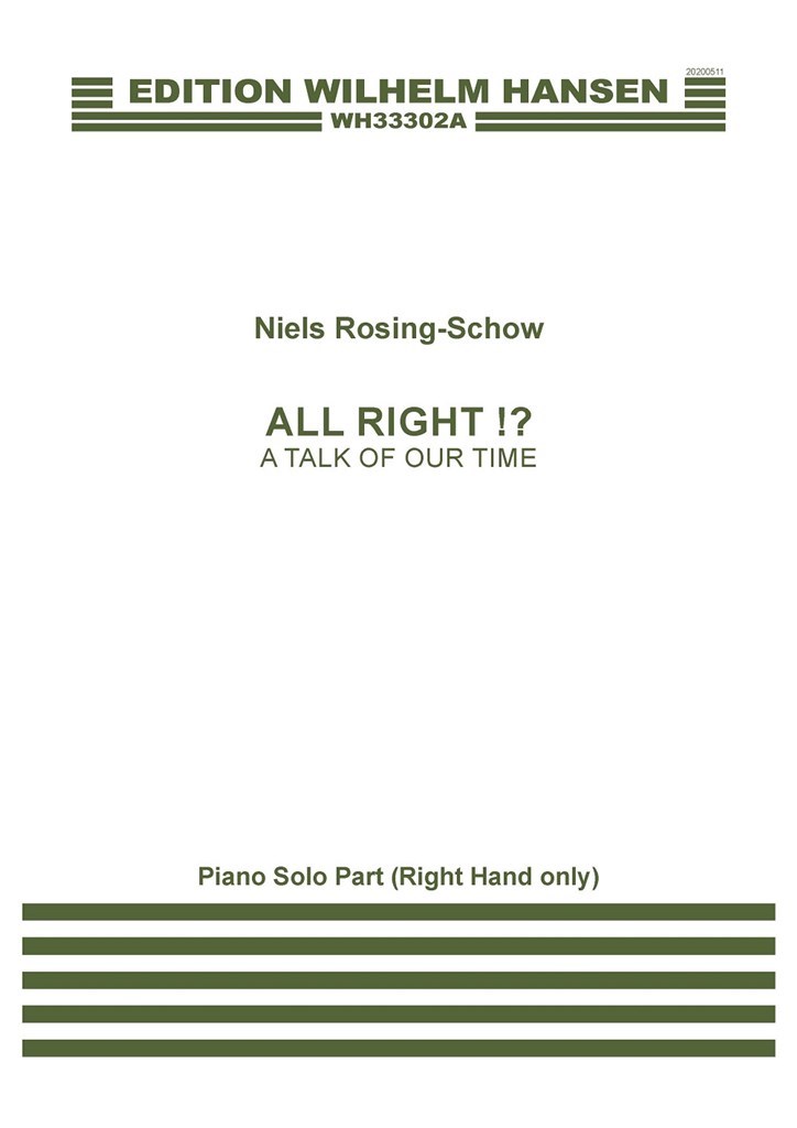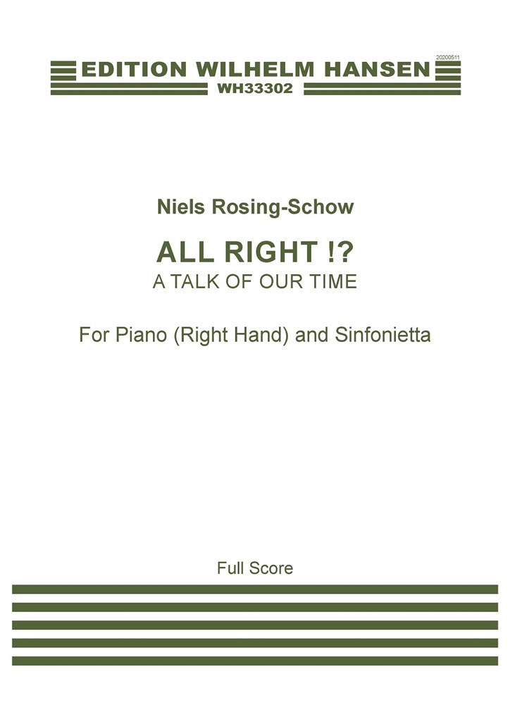 All Right !? (2020), composed by Niels Rosing-Schow, for piano (right hand) and sinfonietta and written for Athelas Sinfonetta and the pianist Manuel Esperilla.