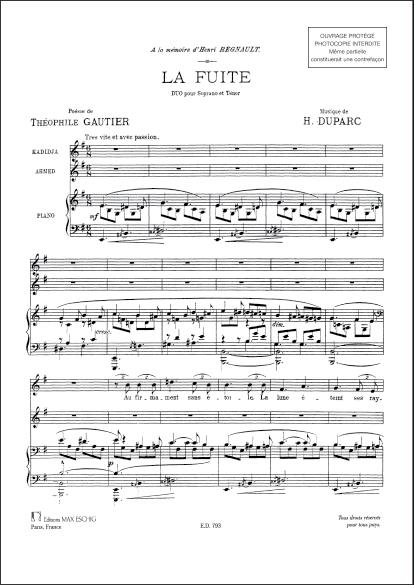 La Fuite. Duo Pour Soprano, Tenor Et Piano DUPARC HENRI