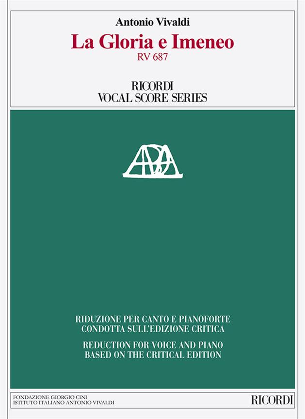 La réduction actuelle provient de l’édition critique de la partition de La Gloria e Imeneo, publiée dans ce catalogue. L’opéra appartient à un groupe des soi-disant « sérénatas françaises » d’Antonio Vivaldi, à savoir une série d’œuvres composées et jouées entre le milieu des années 1710 et le milieu des années 1720 du XVIIIe siècle, célébrant des événements importants récurrents et non récurrents concernant le Royaume de France et ses représentants diplomatiques résidant en Italie. Cette sérénate fut en effet commandée à Vivaldi par l’ambassadeur français à Venise, Jacques-Vincent Languet, comte de Gergy, à l’occasion du mariage de Louis XV avec la princesse polonaise Maria Leszczyska, et fut exécutée lors d’une fête qui eut lieu dans le jardin de l’ambassadeur le soir du 12 septembre 1725. Cette édition est basée sur la partition autographiée détenue par la Biblioteca Nazionale Universitaria de Turin. Il comprend une brève introduction et un appareil critique qui enregistre toutes les variantes entre la partition autographique et les sources secondaires de compilation.