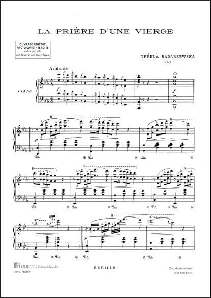 La Priere D’Une Vierge, Pour Piano BADARCZEWSKA THEKLA