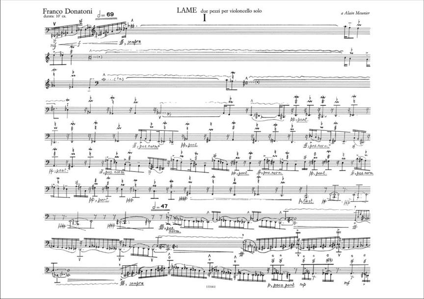Lame 2 Pezzi Per Violoncello Solo DONATONI FRANCO