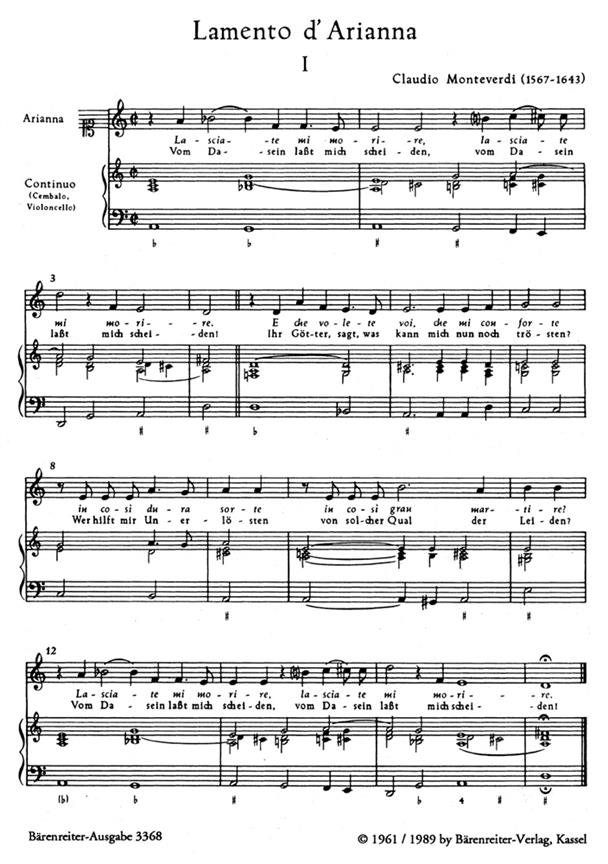 Lamento D’Arianna – Klage Der Ariadne MONTEVERDI CLAUDIO