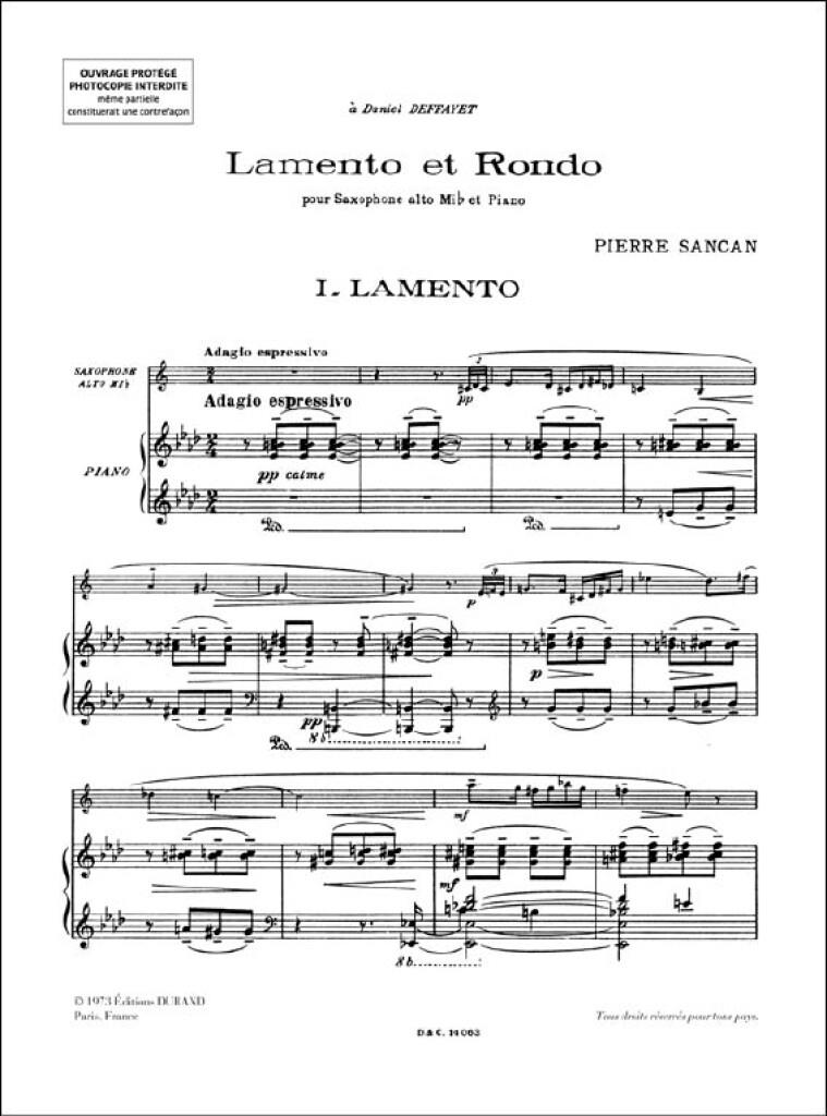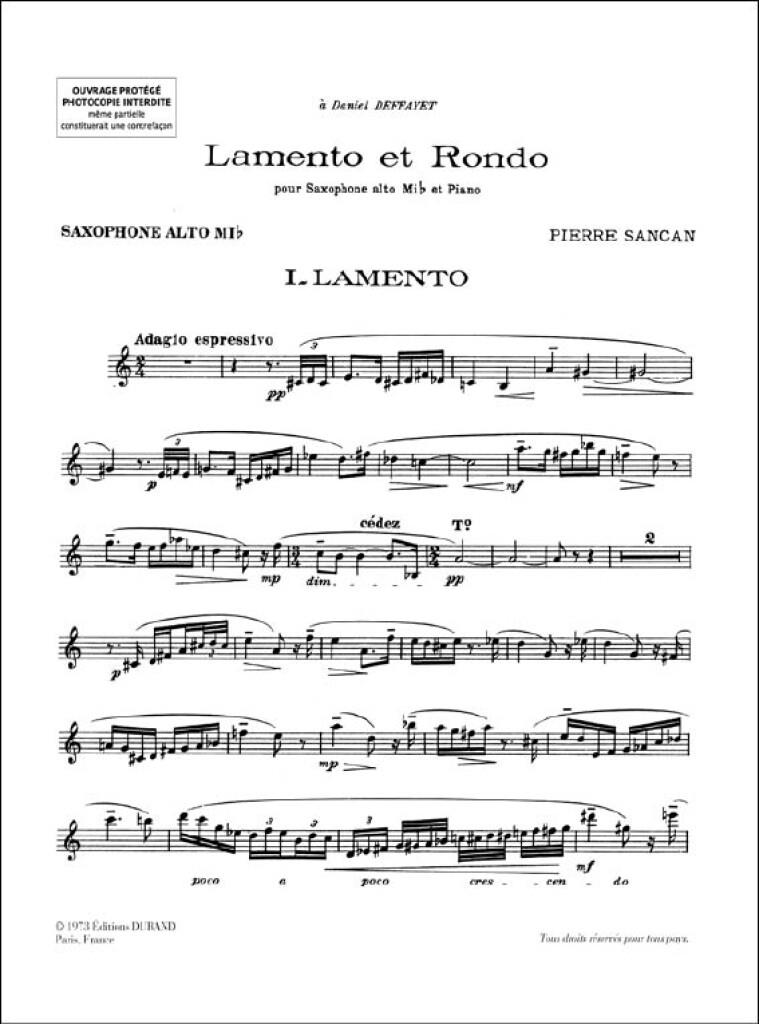 Lamento Et Rondo Pour Saxophone Alto En Mi Bemol Et Piano SANCAN PIERRE