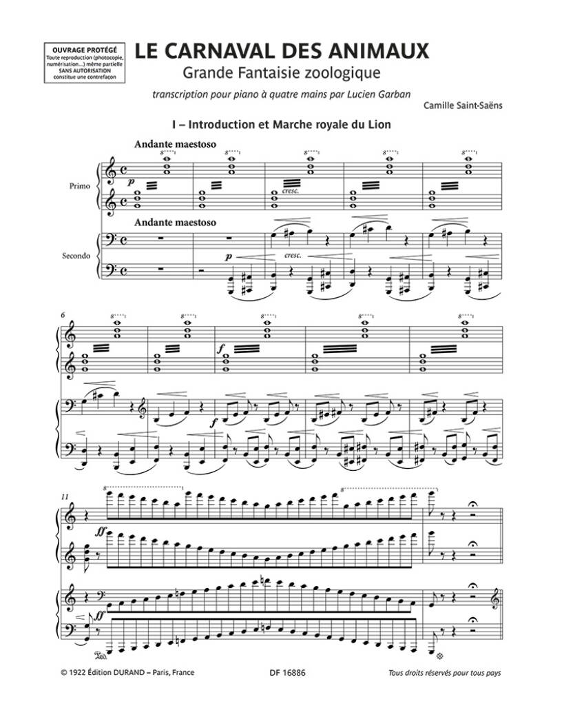 LE CARNAVAL DES ANIMAUX SAINT-SAENS CAMILLE / GARBAN LUCIEN (Arr.)