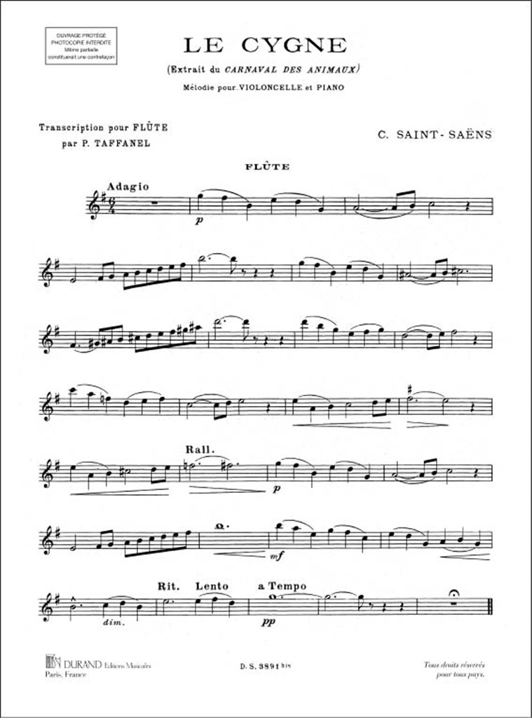 Le Cygne (Cigno) Flûte/Piano (Taffanel) SAINT-SAENS CAMILLE