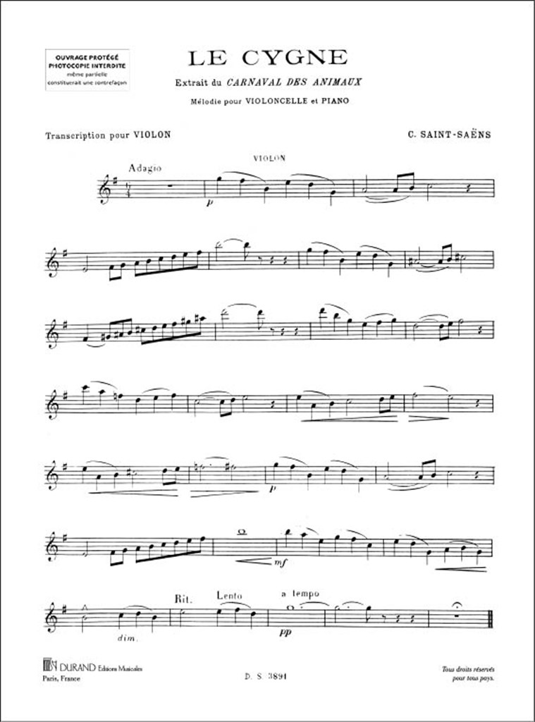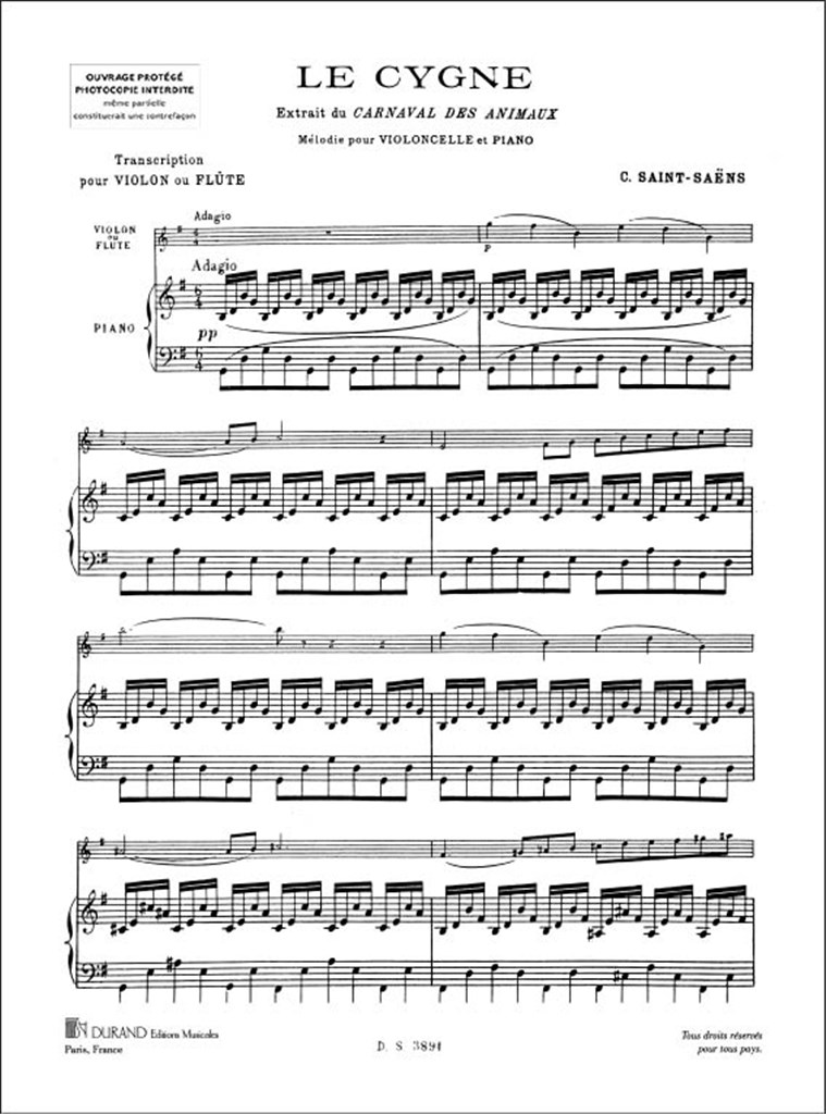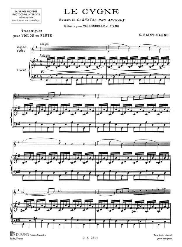 Le Cygne Extrait De Le Carnaval Des Animaux SAINT-SAENS CAMILLE