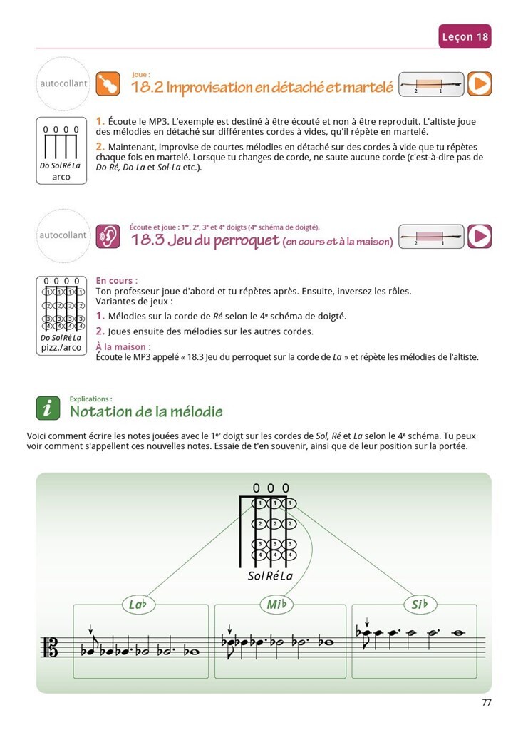 Destiné aux élèves partir de sept ans environ, Le Monde de L' Alto peut être utilisé pour les leçons individuelles et en groupe. Le présent ouvrage s’accompagne d’un site web où se trouvent de nombreux fichiers MP3 et PDF ainsi que des vidéos. Tous les exercices de cette méthode sont expliqués en détail et sont augmentés de photoù et de vidéoù très clairs, particulièrement utiles pour assurer la bonne compréhensioù des élèves (et des parents) pour le travail la maison. Avec Le Monde de L' alto les leçons peuvent être personnalisées, car presque toutes les méthodes didactiques sont employées. Chaque élève peut donc bénéficier d’un enseignement «sur mesure». Cet ouvrage comprend: