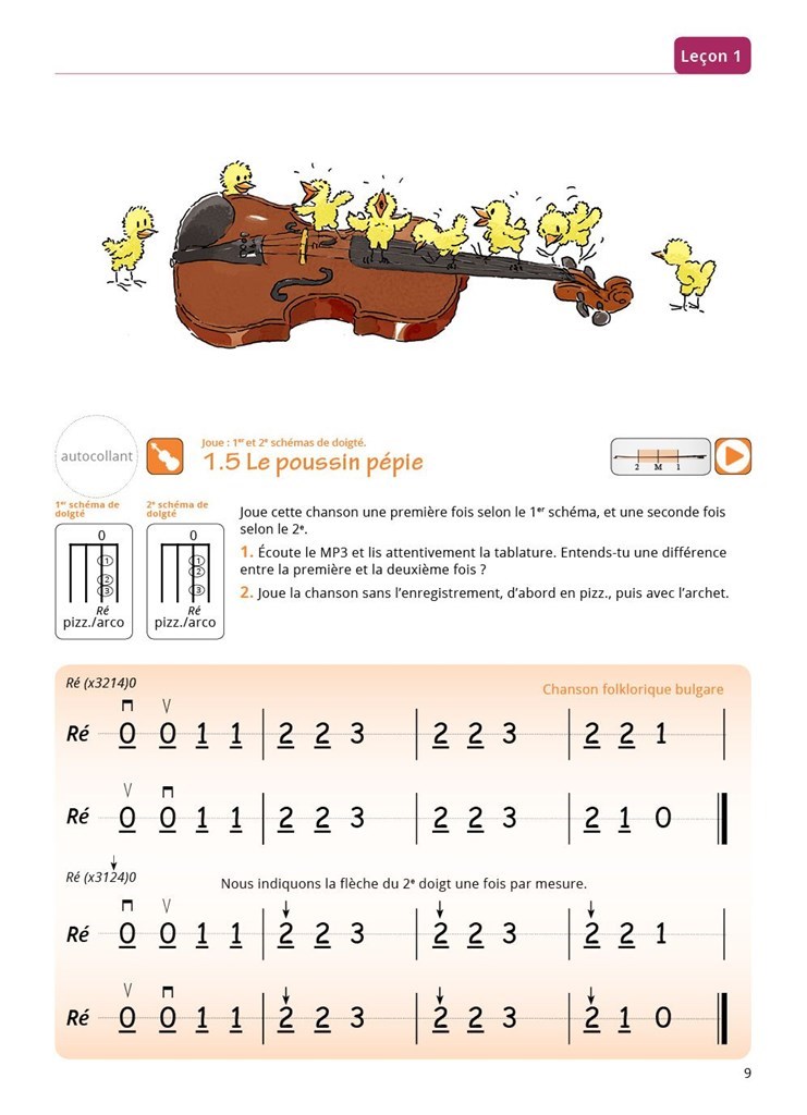 Des exercices techniques d’abord expliqués par un texte et des images (photoù et vidéos) et, plus tard, en notation musicale.