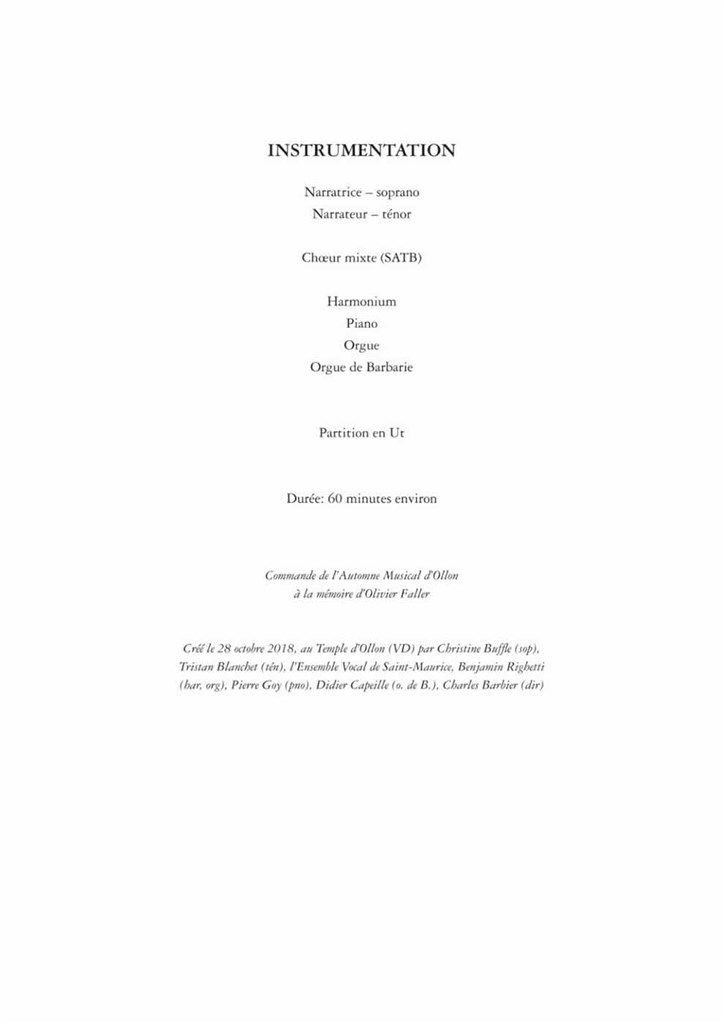 Le Mystère d'Agaune for two narrators (soprano and tenor), mixed choir, harmonium, piano, organ and barrel organ by Richard Dubugnon.