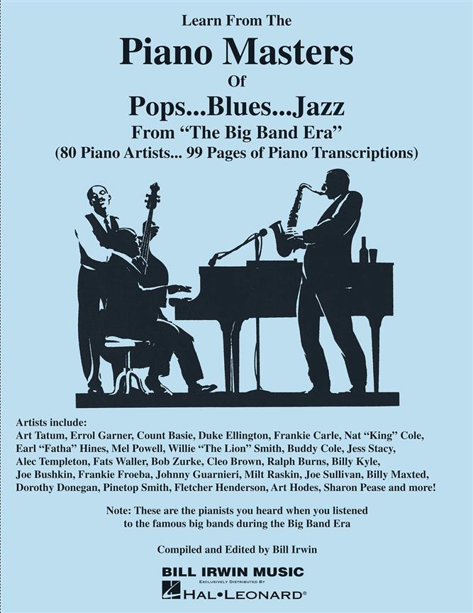 Cette collection unique provient de partitions originales de magazines datant de l’âge d’or des big bands. Bill Irwin partage sa collection de musiques de légendes du genre (Art Tatum, Nat « King » Cole, Count Basie, Duke Ellington, Error Garner, Fats Waller, Alec Templeton, etc.) ainsi que d’autres pianistes moins connus mais influents tels que Milt Buckner, Buddy Cole, Pete Johnson, Mel Powell, Gohnny Guarnieri, et bien d’autres. Irwin inclut une analyse de chaque pièce, avec des aperçus musicaux sur le style et les techniques utilisés. Quiconque souhaite jouer dans les styles big band et suit l’évolution du jeu populaire au piano sera fasciné par ce regard dans le passé.