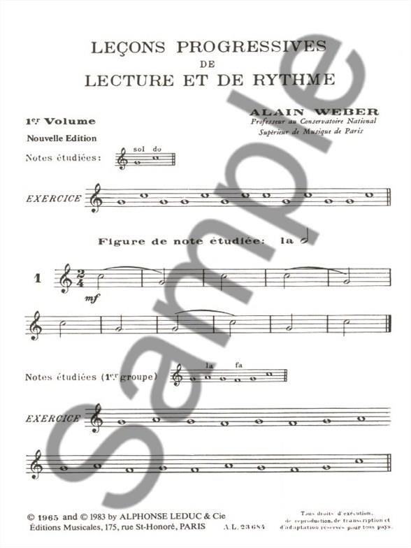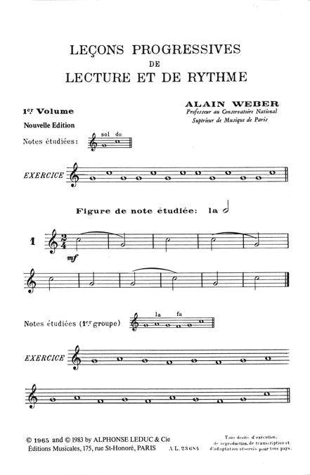 French composer, Alain Weber (b. 1930) writes Leçons Progressives de Lecture et de Rythme with much experience and expertise. This first volume, which considers note and rest values, time signatures and clefs in great detail, is essential to accompany basic theory progression. Following graduation from the Paris Conservatoire, Weber spent time in Italy to develop his own musical style. However, he soon returned to the institution as a professor of theory and counterpoint. He is a significant contributor to important teaching materials and Leçons Progressives de Lecture et de Rythme is noexception.