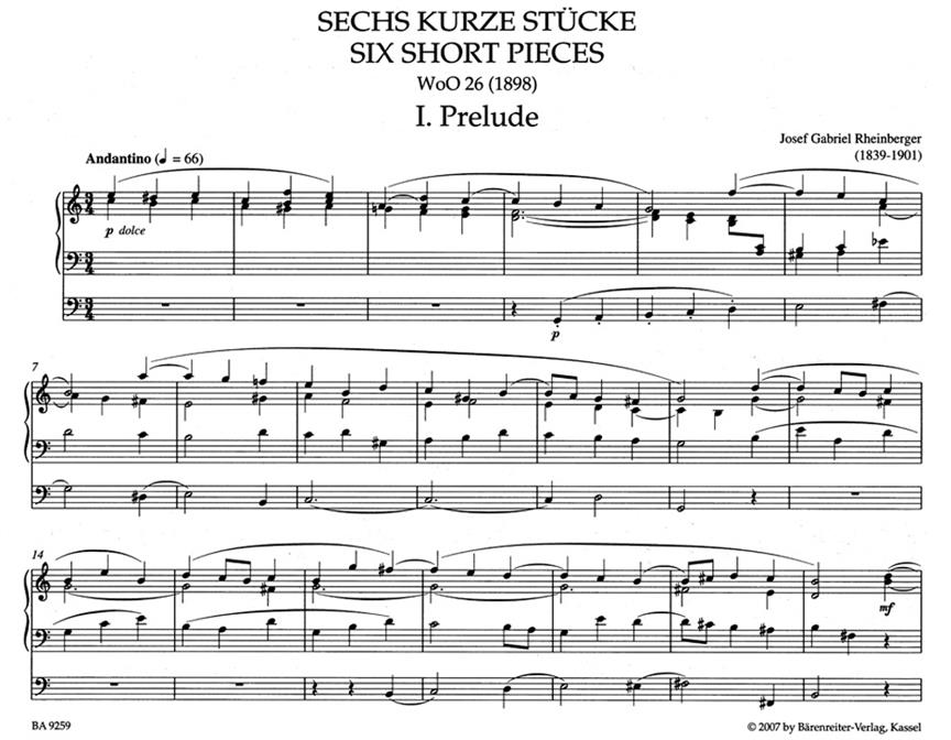 Josef Gabriel Rheinberger: Sechs kurze Stücke WoO 26 (1898):