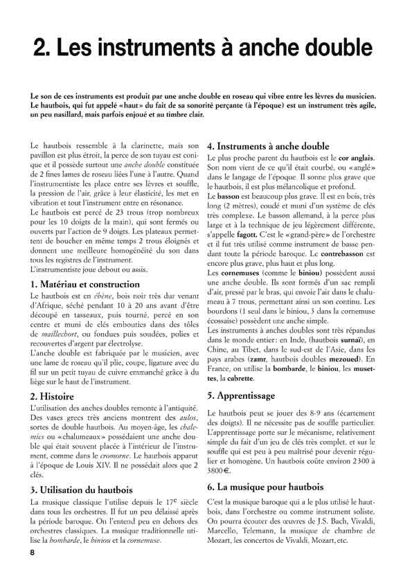 Un ensemble (livre et CD) pour découvrir les instruments de musique en classe, à l'école de musique ou à la maison qui comprend plus de 400 dessins d'instruments avec les textes sur l'histoire, la fabrication, l'apprentissage, le coût des instruments, le répertoire.