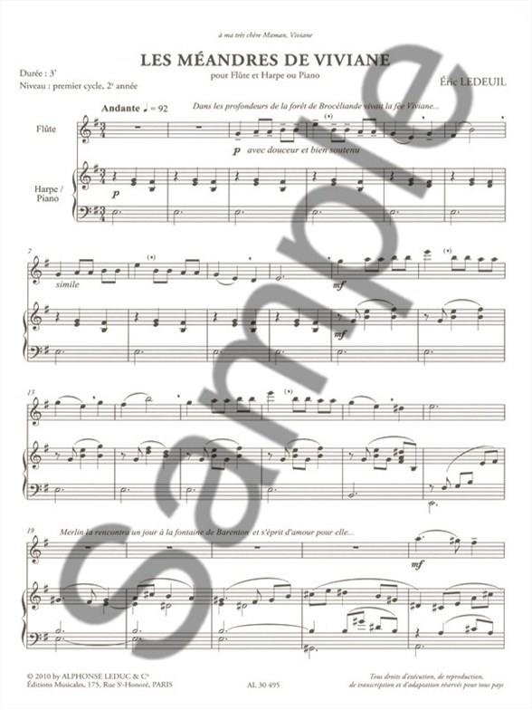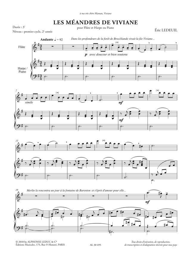 Les Méandres De Viviane (3′) (Cycle 1, 2ème Année) Pour Flûte Et Harpe (Ou Piano) LEDEUIL ERIC