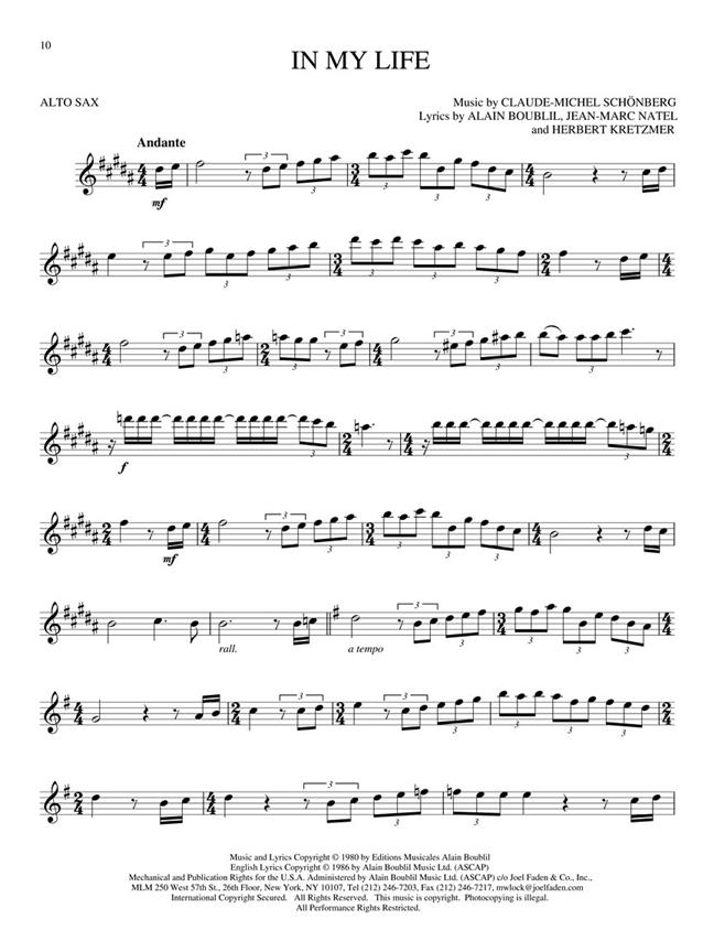 Ce portefeuille comprend 14 classiques de l'adaptation du film oscarisé de Boublil et Schönberg superlatif musicale, Les Misérables, savamment arrangé pour solo saxophone alto. Comprend la nouvelle chanson coup et: Suddenly and: At the End of the Day - Bring Him Home - Castle on a Cloud - Do You Hear the People Sing? - Drink with Me (To Days Gone By) - Empty Chairs at Empty Tables - A Heart Full of Love - I Dreamed a Dream - In My Life - A Little Fall of Rain - On My Own - Stars - Who Am I?